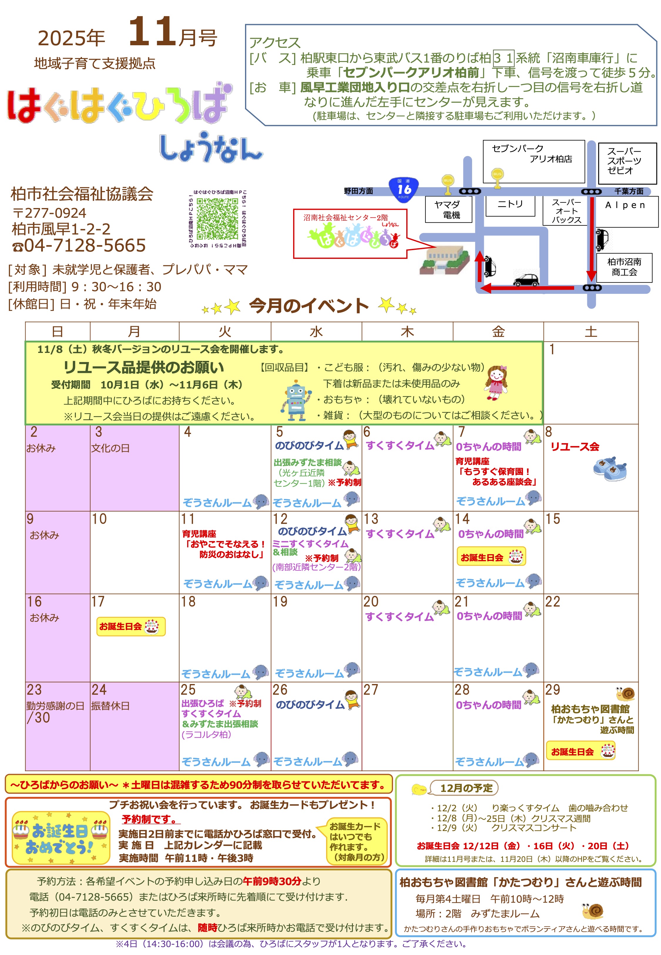 場所:はぐはぐひろば沼南(千葉県柏市風早1-2-2)