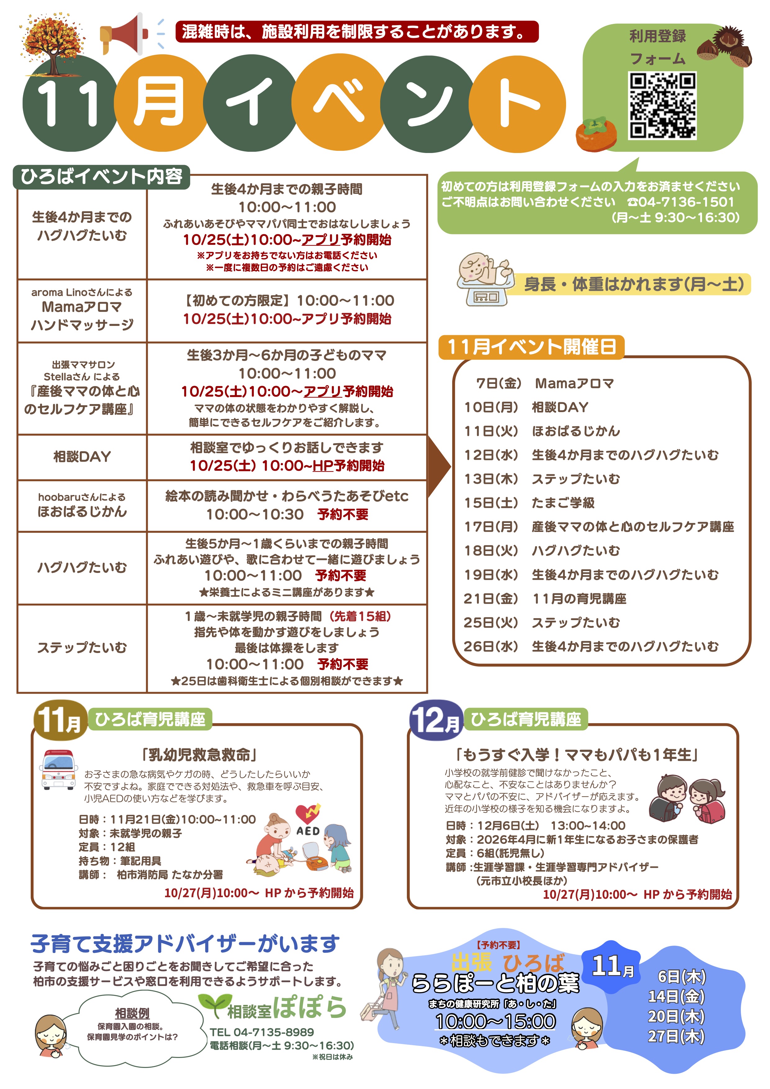 はぐはぐひろば柏たなか 2025年11月のお知らせ