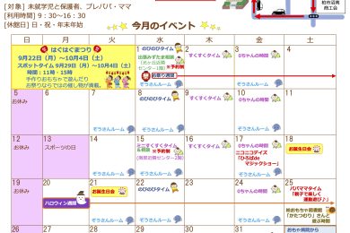 はぐはぐひろば柏たなか 2025年9月のお知らせ 開催期間:2025年9月 開催時間:月曜日〜土曜日 9:30…