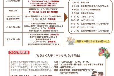 はぐはぐひろば柏たなか 2025年11月のお知らせ 開催期間:2025年11月 開催時間:月曜日〜土曜日 9:…